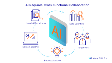 Close cooperation between data scientists, engineers, subject matter experts, legal teams, and business stakeholders is necessary for successful AI projects. Poor adoption, ambiguous performance measures, and misplaced expectations can result from communication gaps between technical and non-technical personnel.